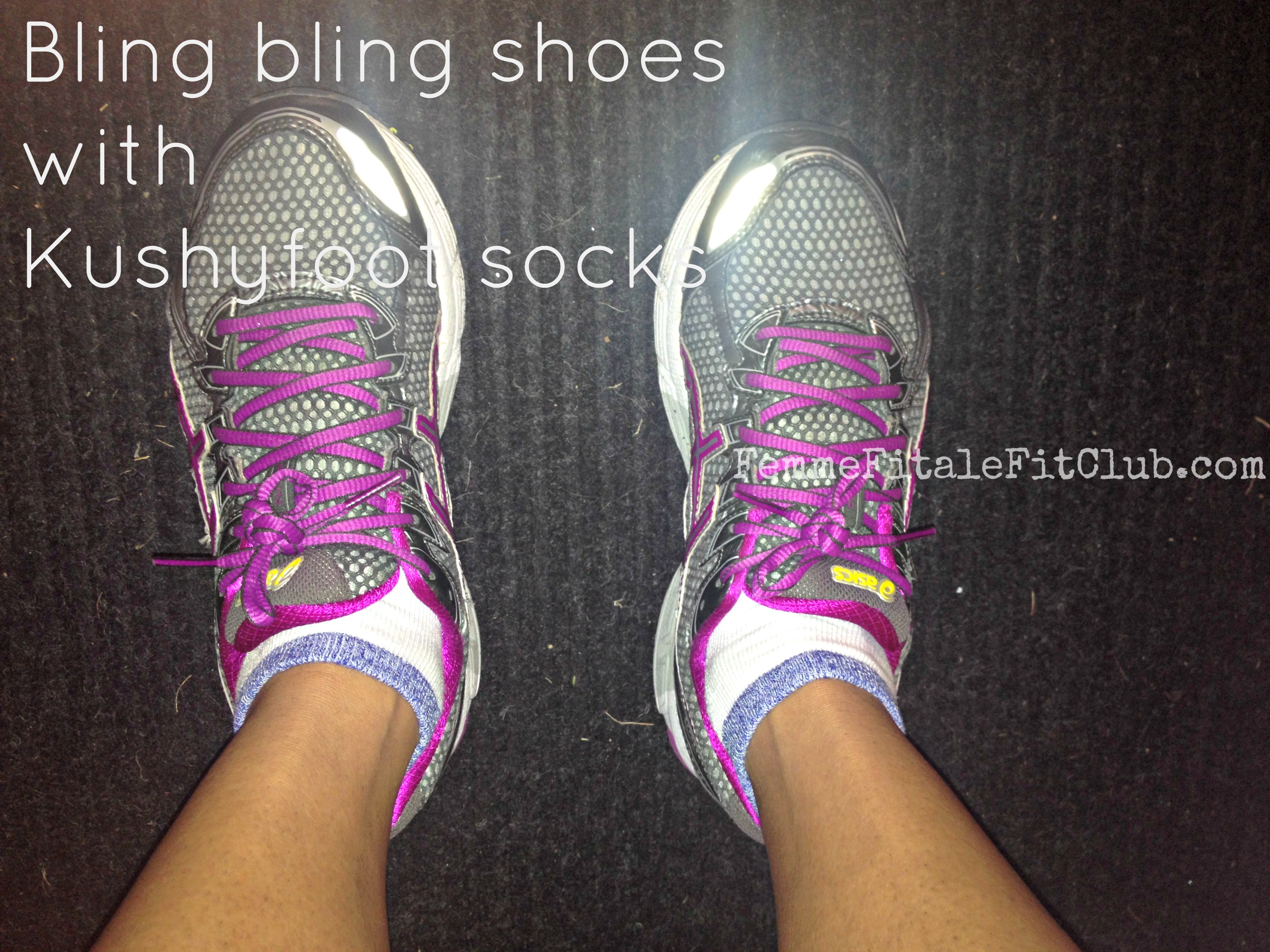 I then wore my Kushyfoot® Athletic Socks to boot camp. I will admit we do a lot of stop and go, sprints, change in direction and spontaneous movements all the time so I knew this workout was really going to put those socks to the test. As expected we did all of the movements I mentioned above and the socks performed OK but they were a tad bit thin therefore my foot was sliding around more than normal in my running shoes. Yes I wear my Asics to boot camp because of all the running we do. I tied my running shoe as tight like I always do and double knotted them but my foot still had room to move around which slowed me down during my sprint drills. Bummer.